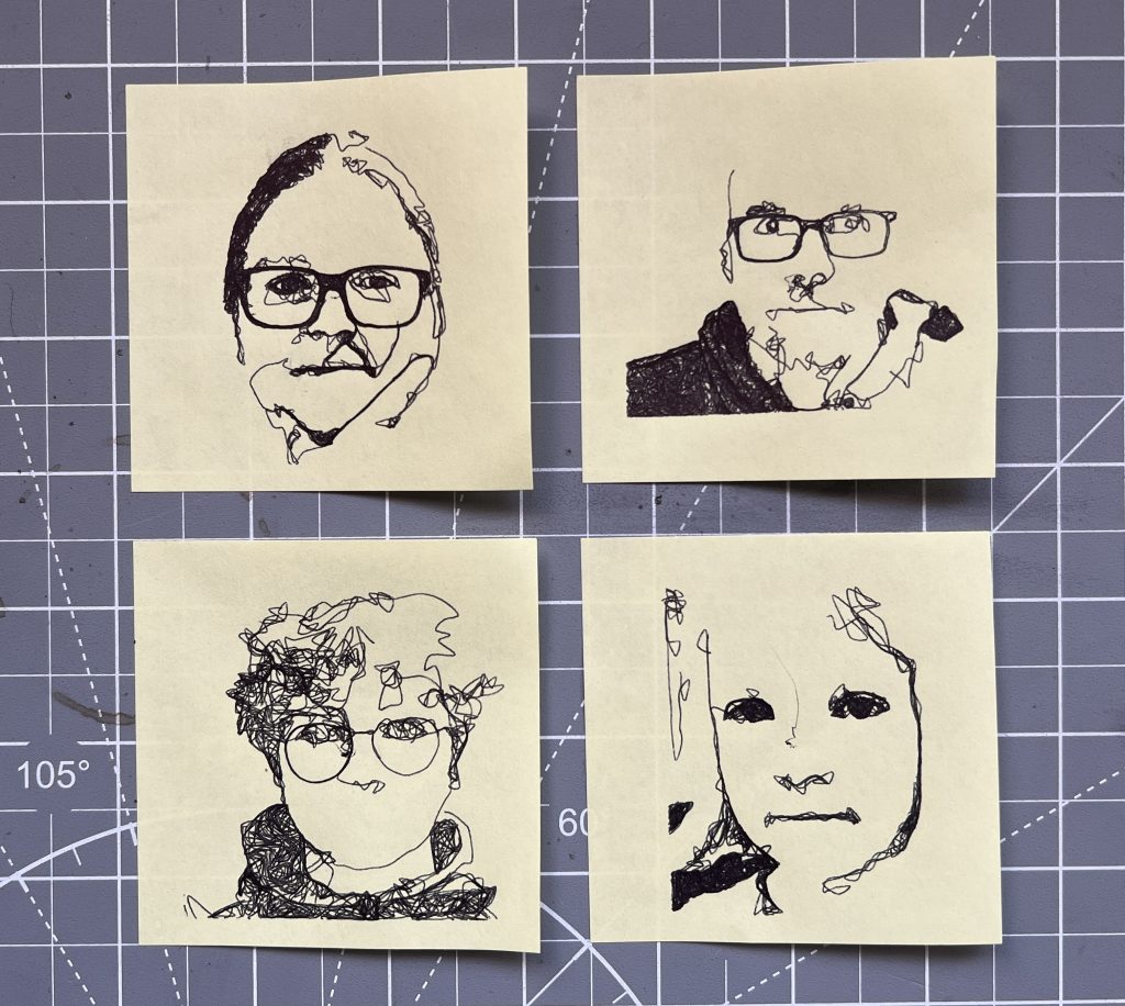 Unfortunately, I only had one PlottyBot doing the Post-it portraits, and they take much longer than the lasers so I spent much of the evening trying to keep track of a queue of people who wanted one.